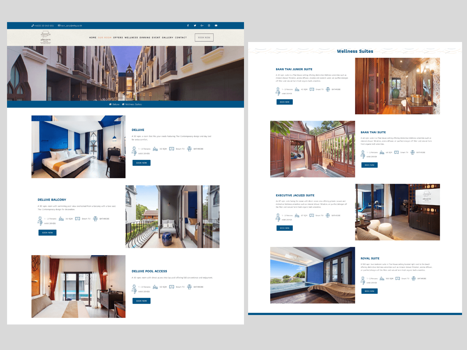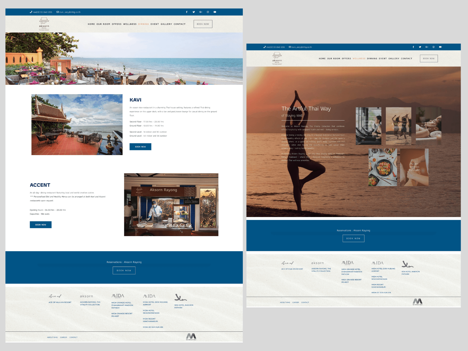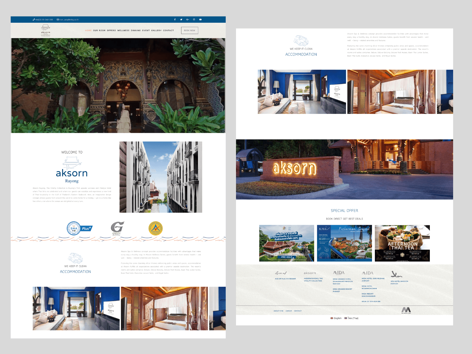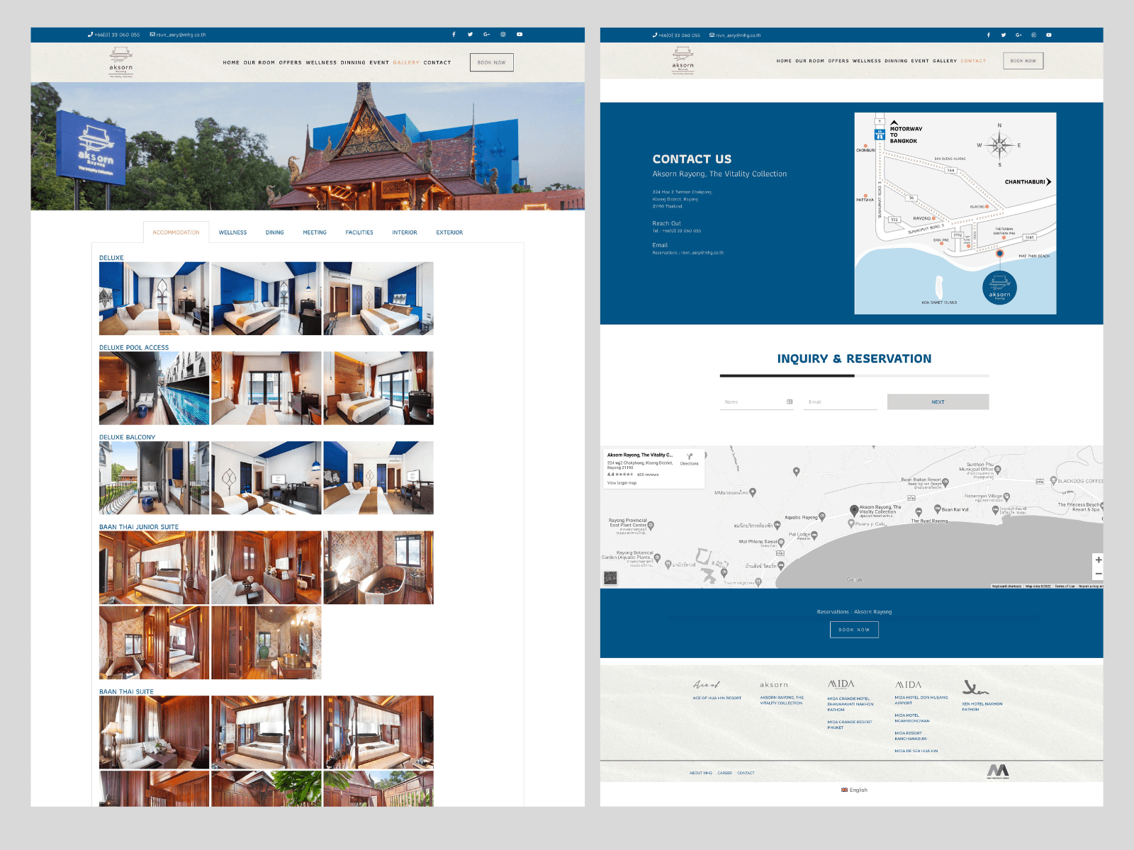 The design of the website focuses on Thai art in line with the uniqueness of this hotel’s design. This can give visitors to that website a travel-friendly experience. In the Hotel Akorn Rayong, which retains its Thai identity. 5-star hotel next to the Gulf of Thailand.