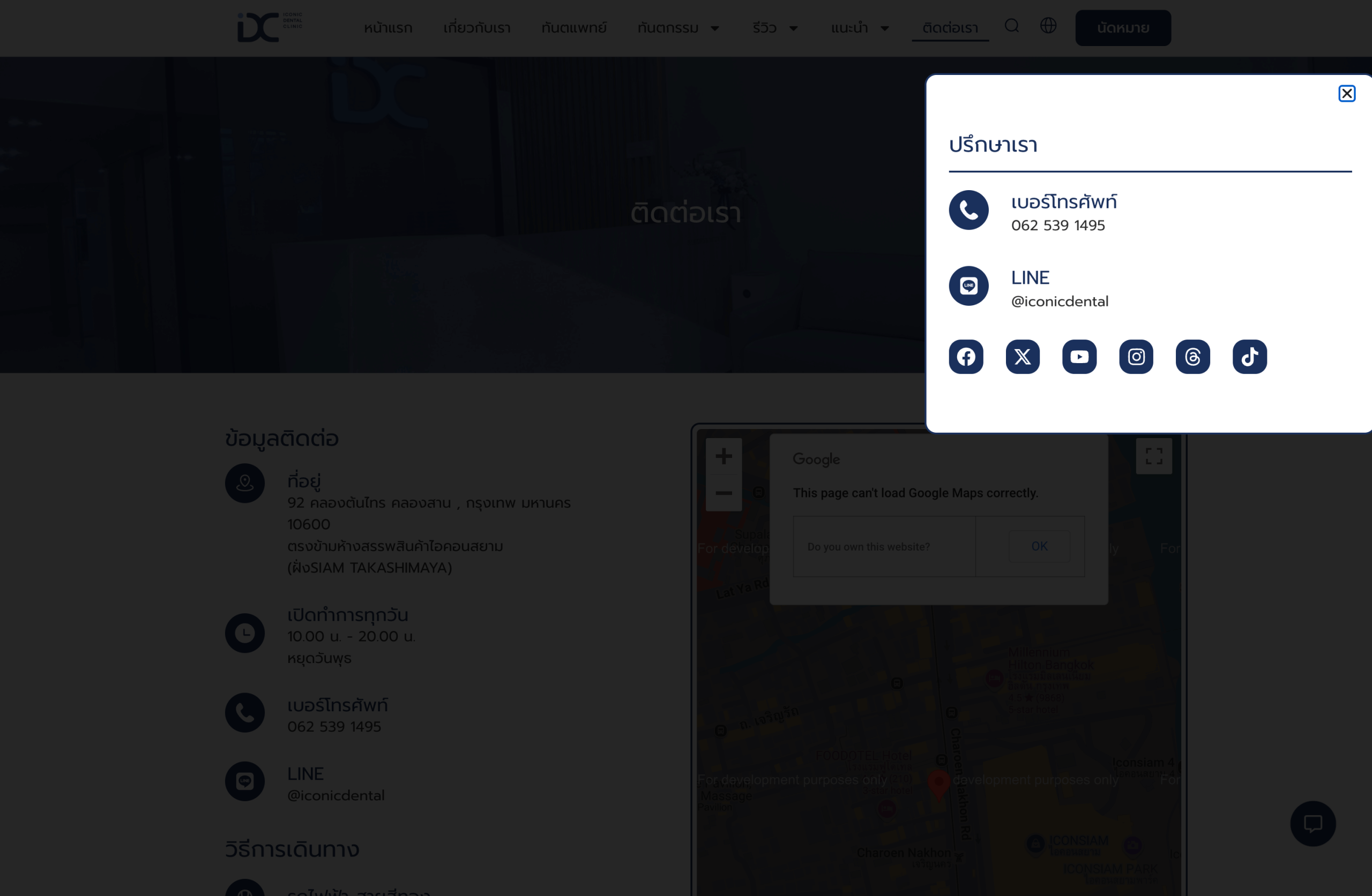 Iconic Dental Clinic is a reputable dental facility located in Bangkok, Thailand, offering a comprehensive range of dental services. Conveniently situated at 92 Charoen Nakhon Road, Khlong Ton Sai, Khlong San, Bangkok 10600, the clinic is easily accessible and provides free parking for up to two hours at nearby ICONSIAM or ICS shopping centers. Additionally, it’s a short walk from the Gold Line BTS station, enhancing its accessibility.